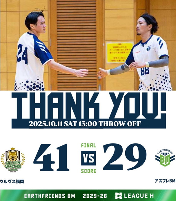 🌎アースフレンズBM 日本リーグ第3戦 10月11日(土)13:00 @アクシオン福岡(福岡県・福岡市) 惜敗