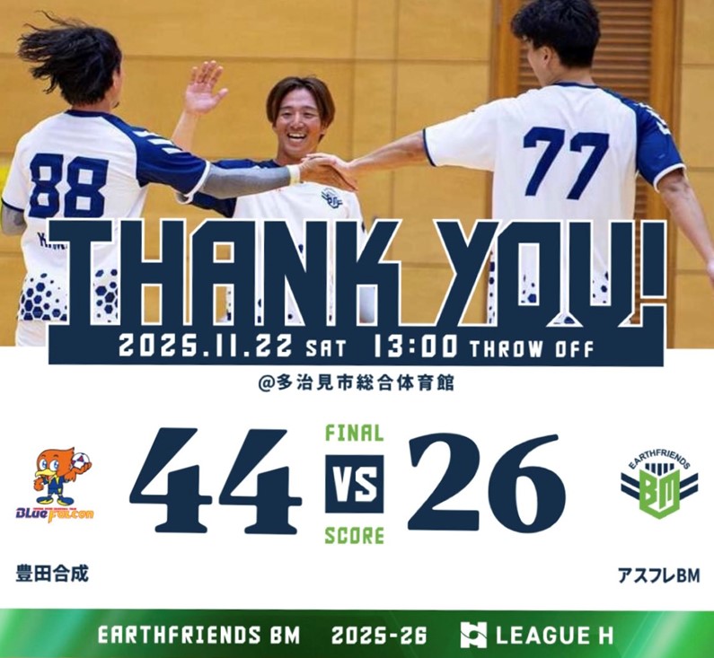 🌎アースフレンズBM 日本リーグ第9戦 11月22日(日)13:00 @多治見市総合体育館 (岐阜県) 惜敗