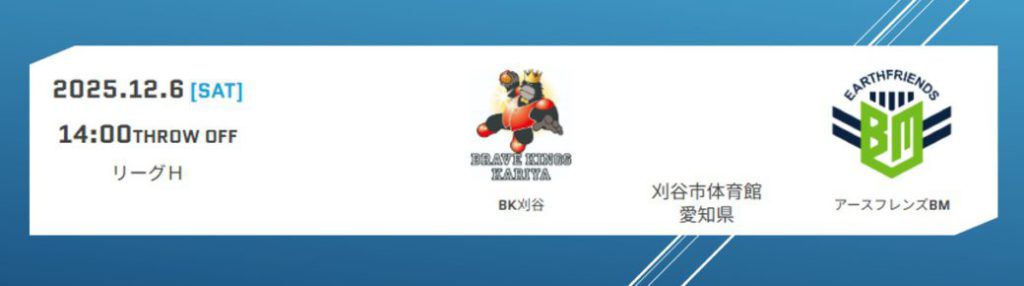 【アースフレンズBM 日本リーグ第12戦】 12月6日(土)14:00 @刈谷市体育館 (愛知県)