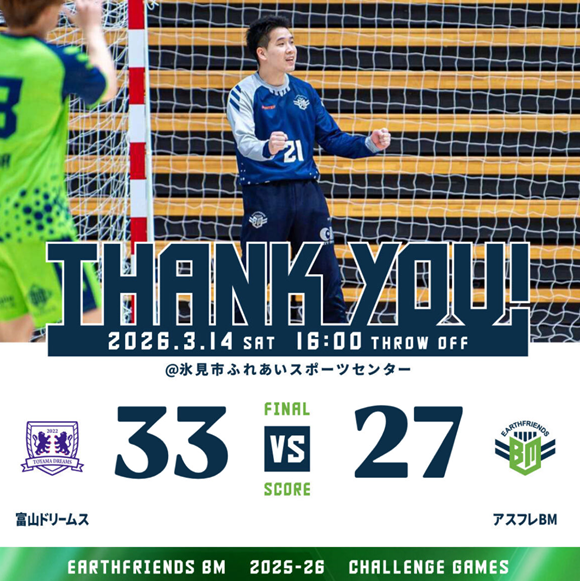 🌎ハンドボールリーグH_チャンレンジリーグ 3月14日(土)@福井県_惜敗・3月20日(金・祝)@東京_惜敗