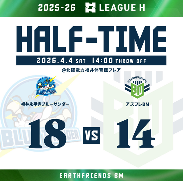 対戦:アースフレンズBM vs 福井永平寺ブルーサンダー