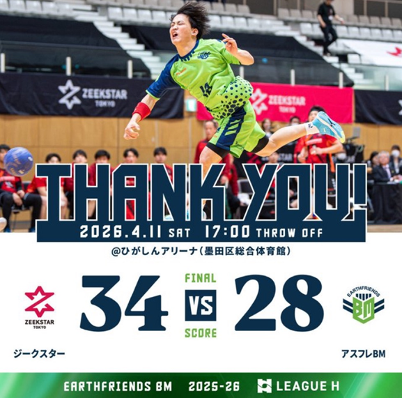 🌎アースフレンズBM 日本リーグ第23戦 4月11日(土)17:00 @ひがしんアリーナ(東京都・墨田区) 惜敗